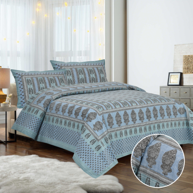 Cotton Printed Bagru New Theme Double Bed sheet with Pillow Cover