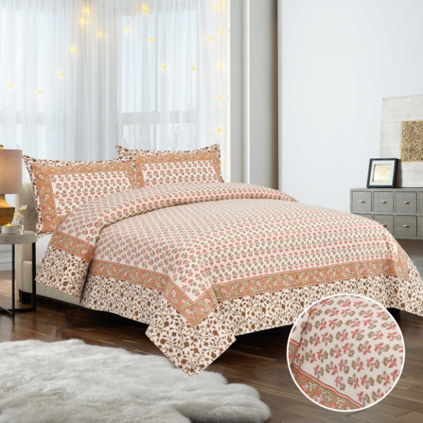 High Quality Cotton Printed Bagru New Theme Double Bed Bedsheet – 100 X 108 With 2 Pillow Covers