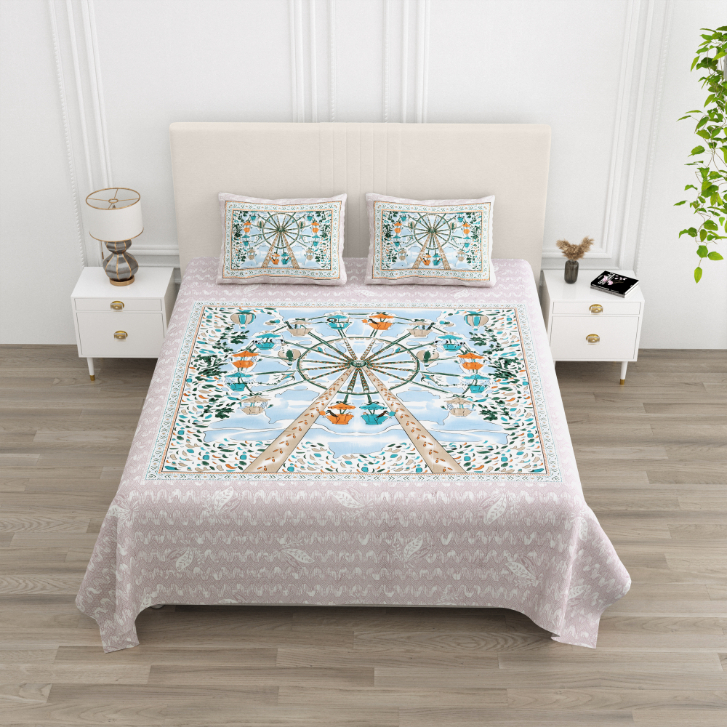 Cotton Printed Circus Double Bedsheet with Pillow Cover