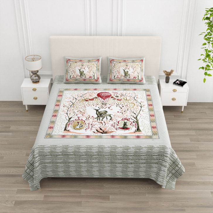 Cotton Printed Circus Double Bedsheet with Pillow Cover