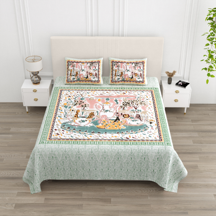 Cotton Printed Circus Double Bedsheet with Pillow Cover