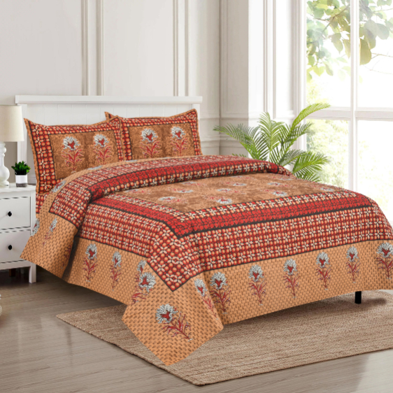 Cotton Printed Discharge Printed Double Bedsheet with Pillow Cover