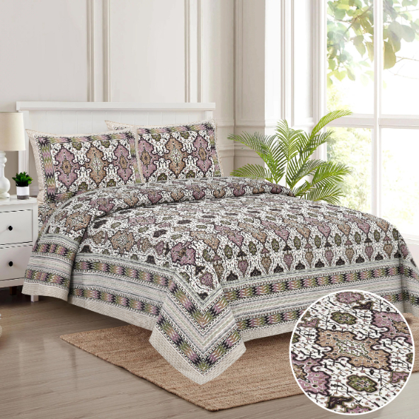 Cotton Printed Double Bedsheet with Pillow Covers