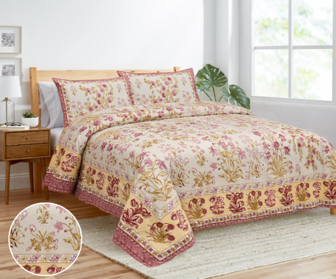 Cotton Printed Double Bedsheet with Pillow Covers