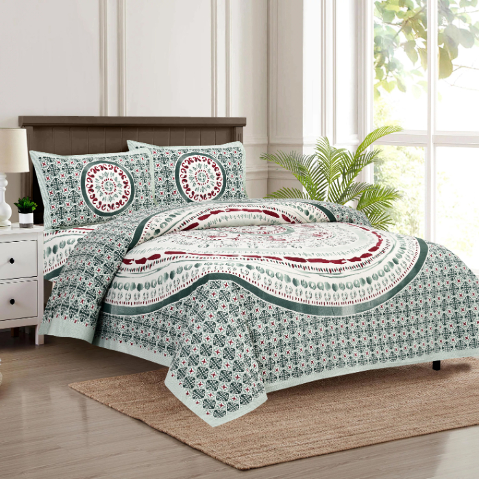 Cotton Printed Golcha Double Bedsheet with Pillow Cover