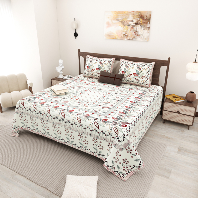 Cotton Printed Tulsi Theme Double Bedsheet with Pillow Covers