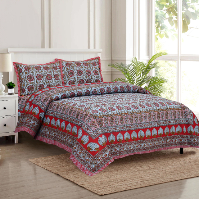 Cotton Printed Marwad Double Bedsheet with Pillow Cover