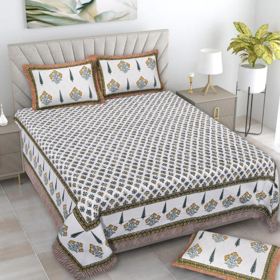 High Quality Cotton Printed Rangila Theme Double Bed Bedsheet – 95 X 108 With 2 Pillow Covers, This Uniquely Designed Product Is Made Of Very Fine Quality Cotton Material And Comes In Various Ranges & Varieties And Hence Fulfills The Need Of All. 95 X 108 Size Bedsheet With 2 Pillow Covers