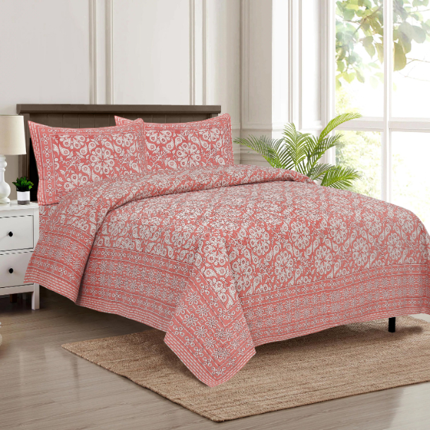 Cotton Printed Sui Dhaga Theme Double Bedsheet with Pillow Cover
