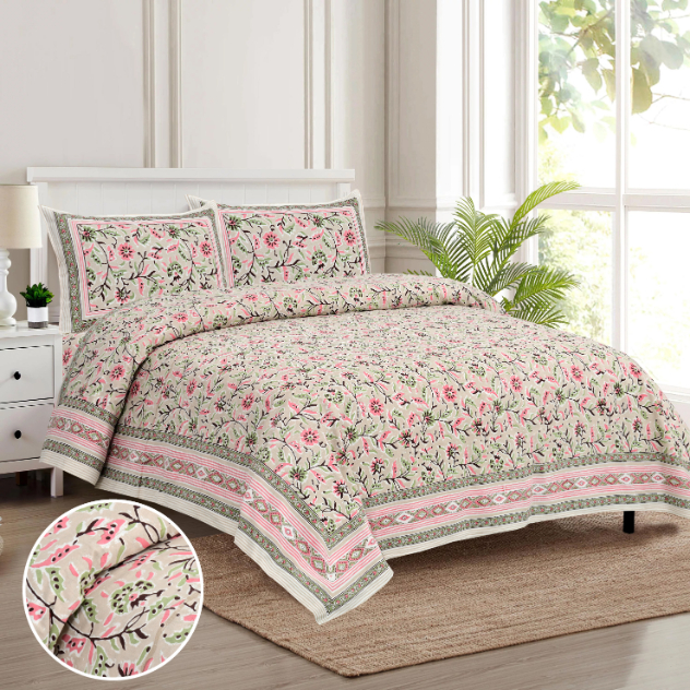 Color: PinkDesign: PrintedFabric Type: CottonGSM: 201-250Packing Type: Loose PackingSize: DoubleThread Count: 251-300 TC