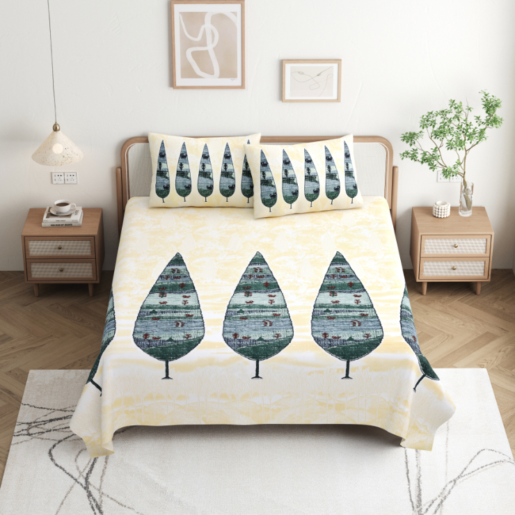 High Quality Cotton printed Leaf theme Double bed Bedsheet