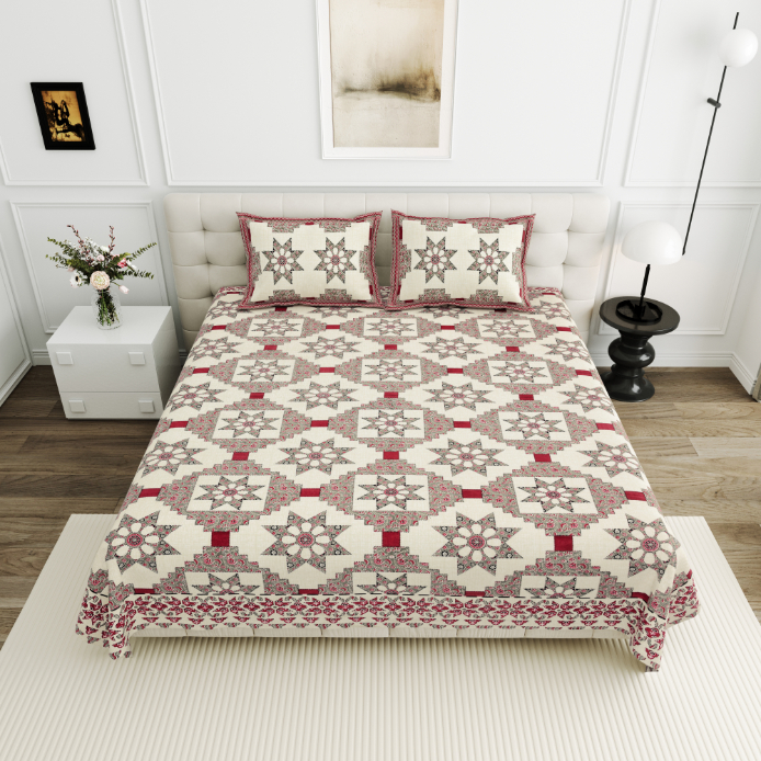 High Quality Cotton Printed Savera Theme Double Bed Bedsheet With 2 Pillow Cover