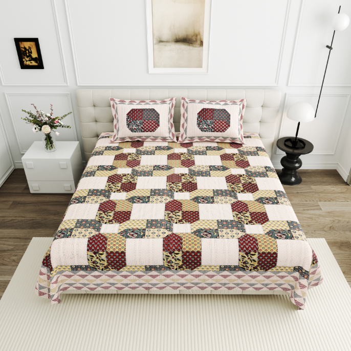 High Quality Cotton Printed Savera Theme Double Bed Bedsheet With 2 Pillow Cover