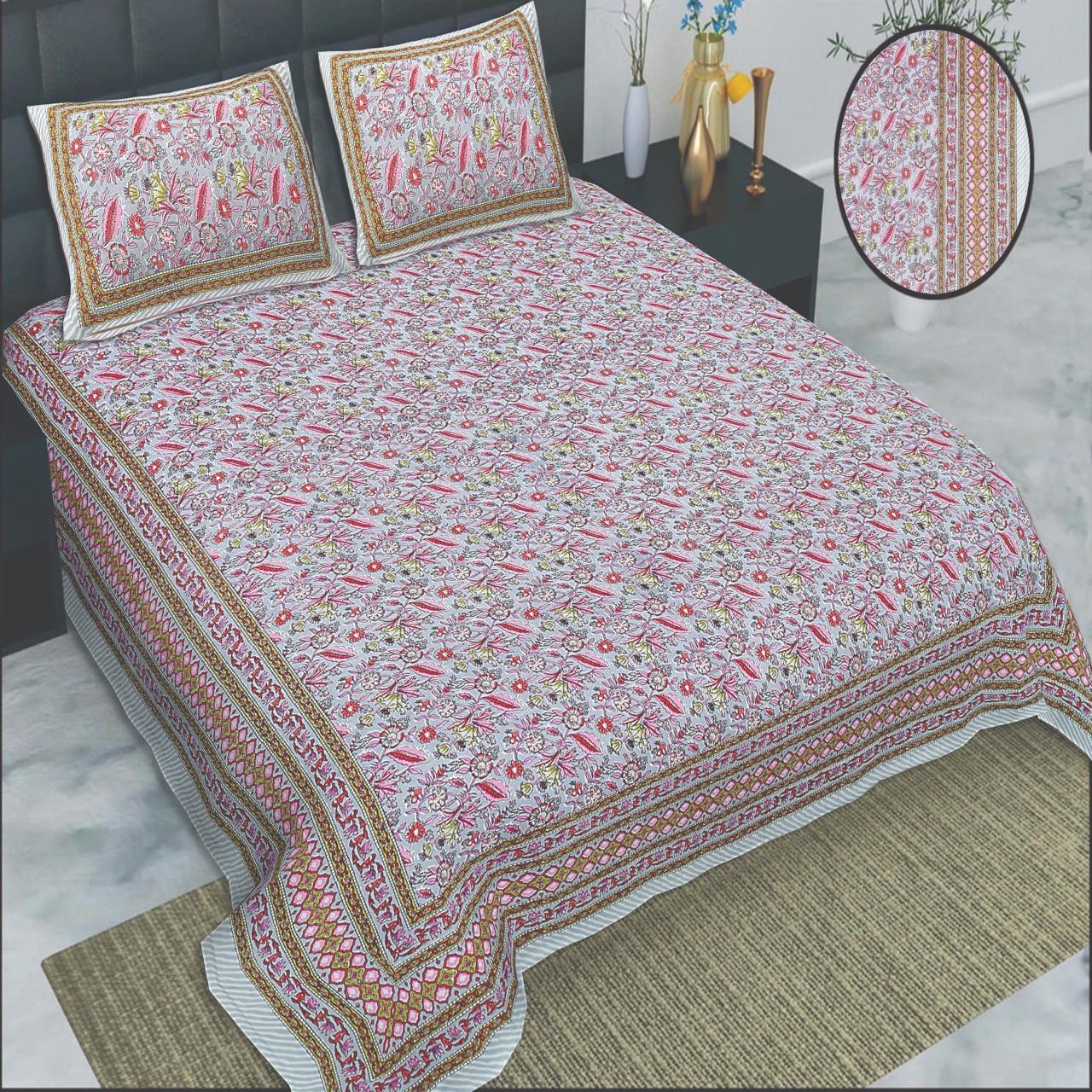 ZAINZONE- Cotton Satin Double Bedsheet with Pillow Cover