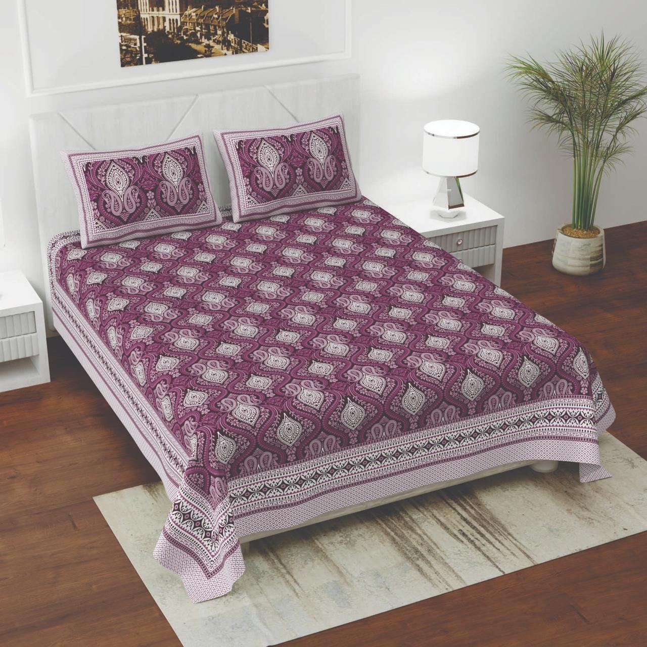 ZAINZONE- Cotton Satin Double Bedsheet with Pillow Cover