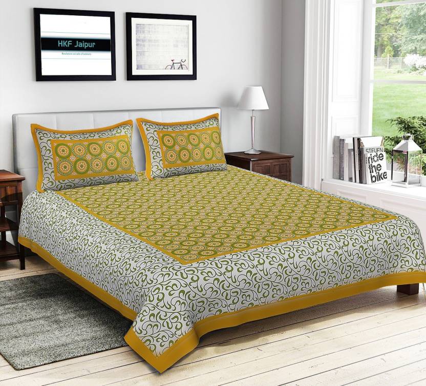 Cotton Printed Tulsi Theme Double Bedsheet with Pillow Covers