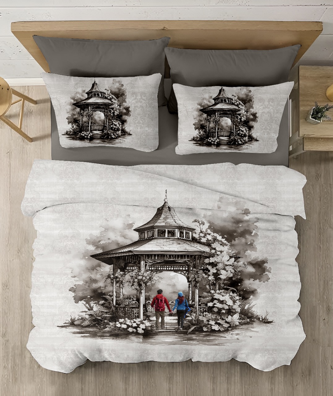 SAMPT – Modern Art Cotton Satin Printed Bedsheet With Dohar and Pillow Cover Set