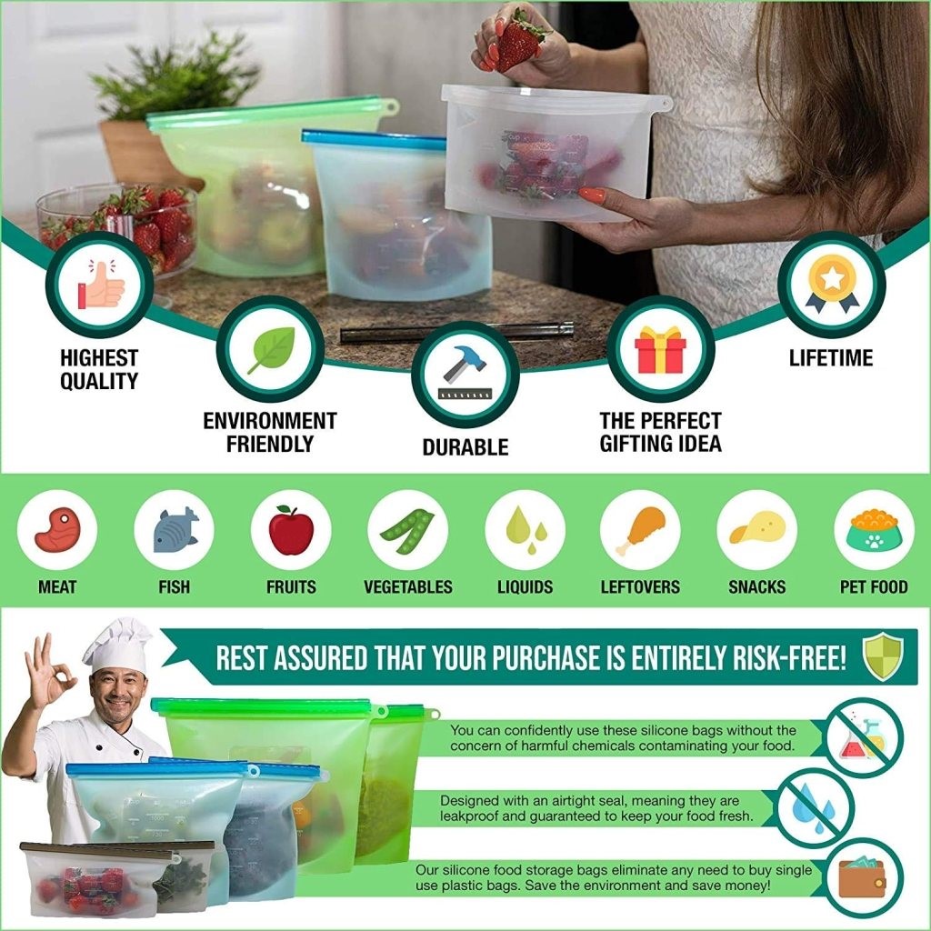 - ECONOMIC – preservation storage bags , durable and reusable , save money , provide you healthy life style. Only pure silicone is safe , healthy , eco-friendly , non-allergenic , non-reactive , hygienic , not toxic to environment , recyclable , possess long lifespan up to 30 years.